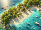 | Beschreibung | Abgeschiedener Strand mit klarem Wasser und weißem Sand, ideal zum Entspannen und für Wassersport. |